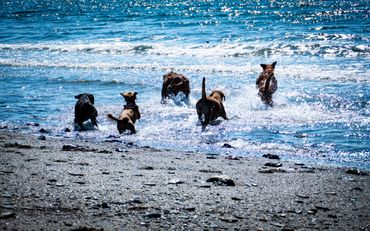 Our facilities are situated on a 60 acre rural farm; we walk amongst the beautiful fields, down into the woods and river, and we are only 5 minutes from a choice of safe sandy beaches. We guarantee your dog will have an amazing enjoyable day!